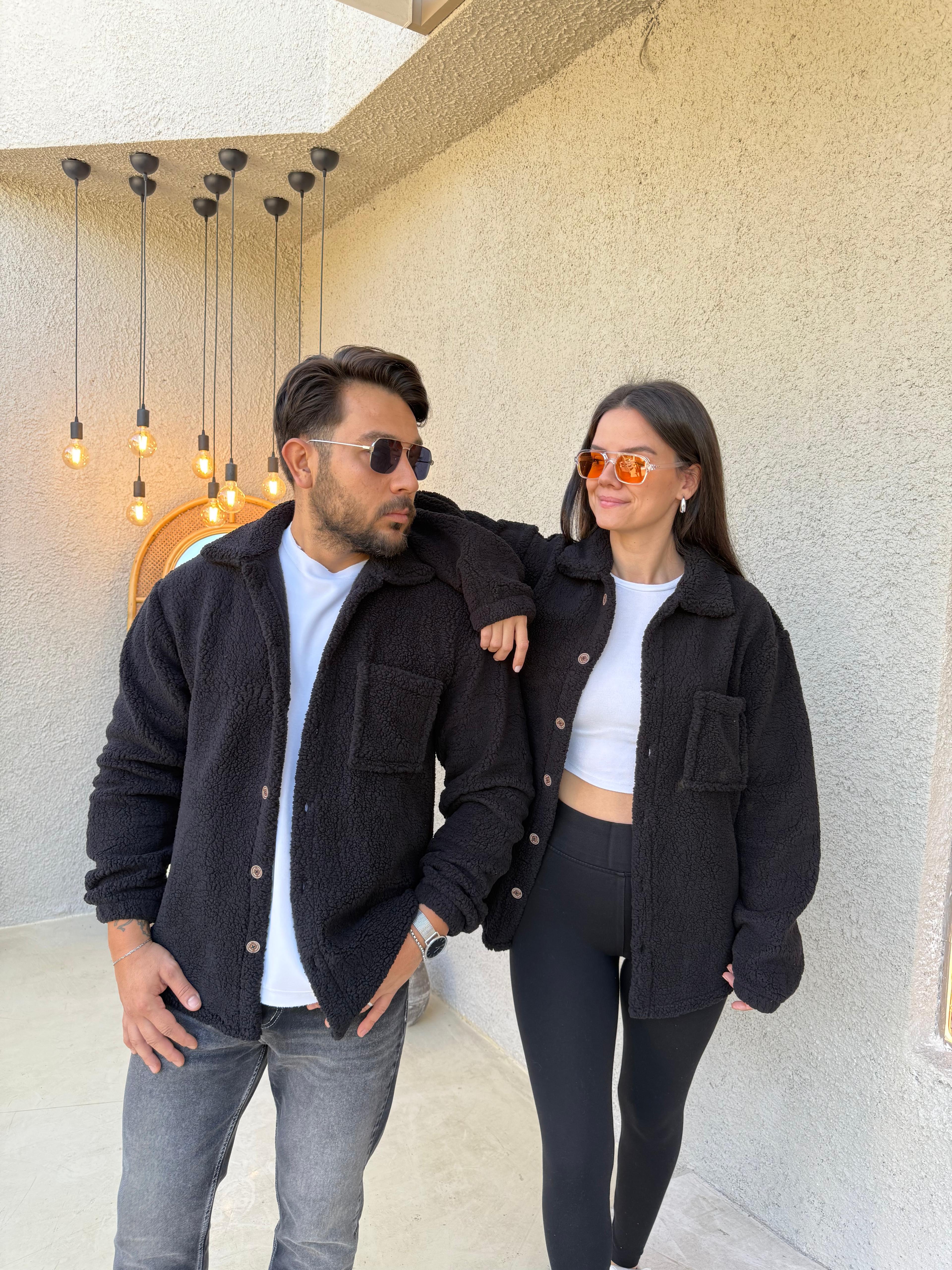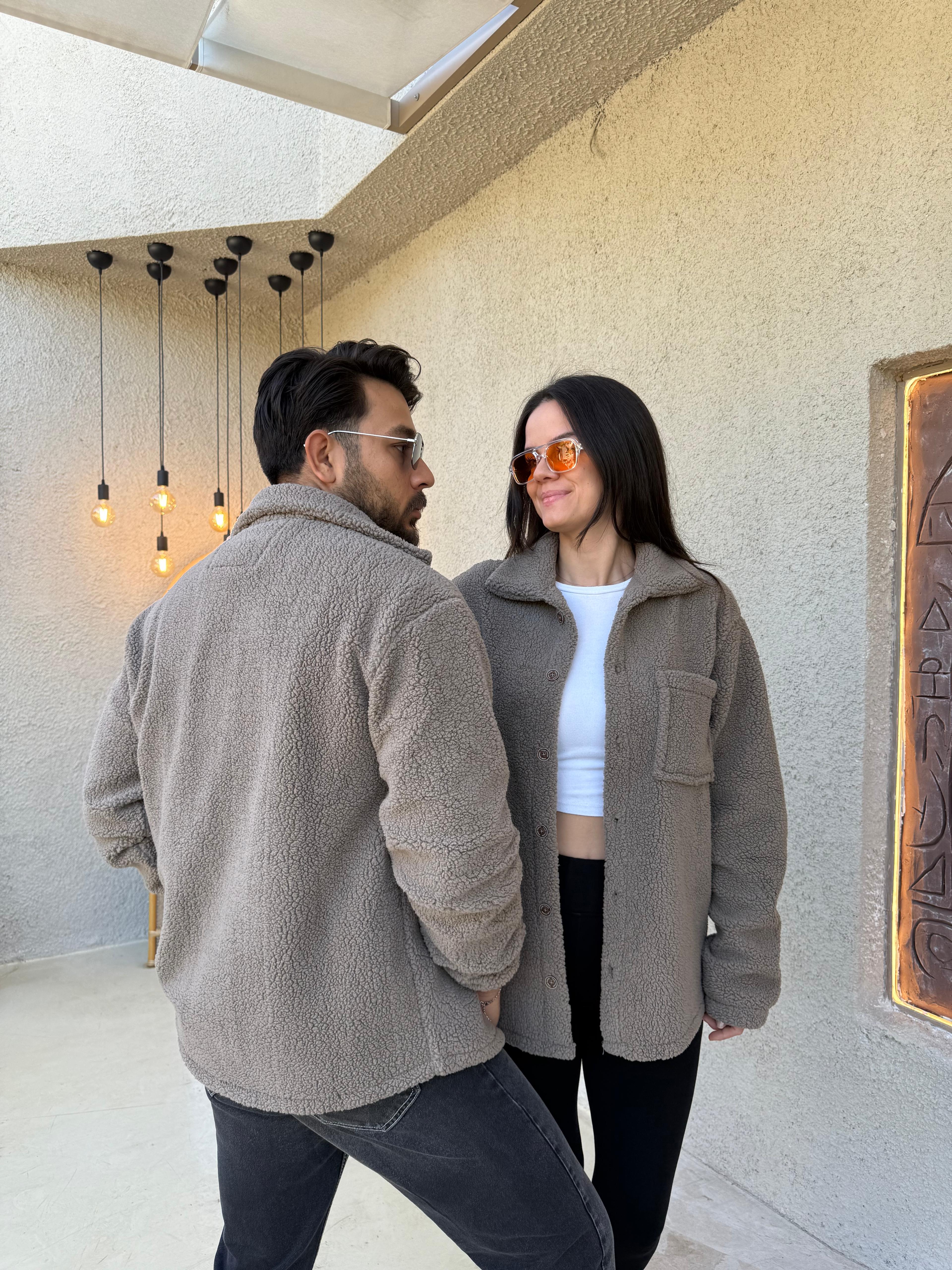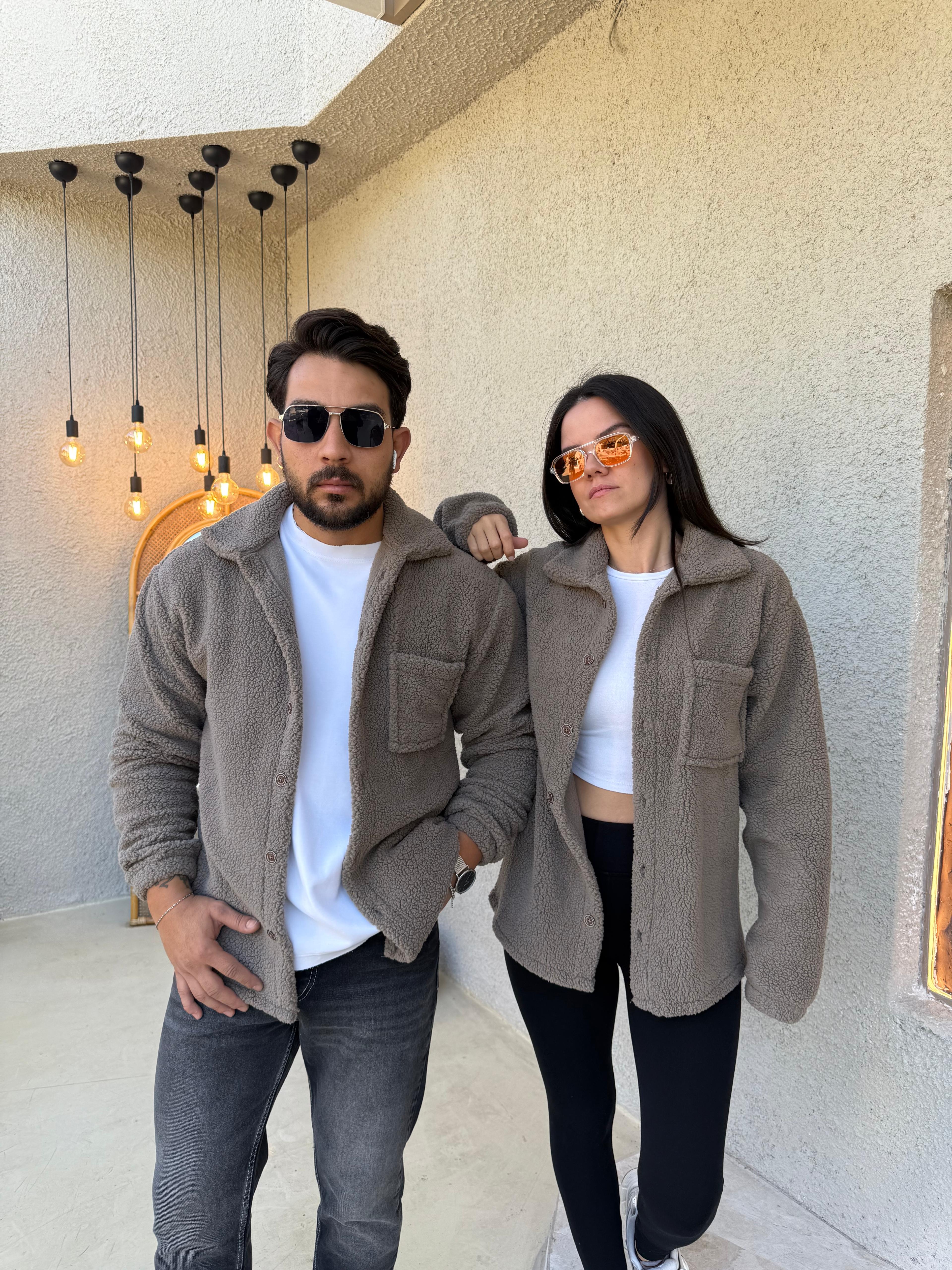Çift Kombini 2 Adet Düğmeli Kuzu Kumaş Kahverengi Ceket