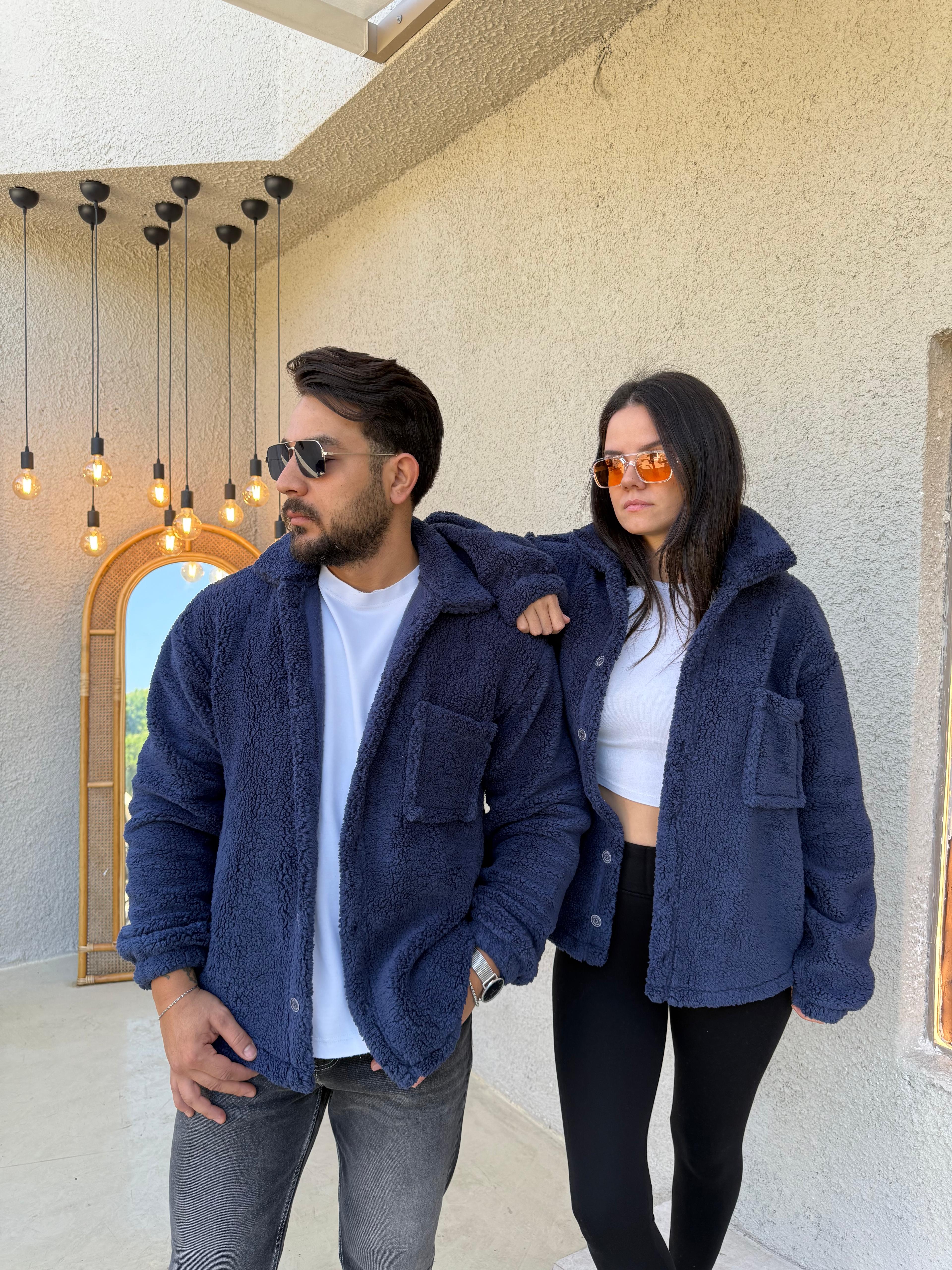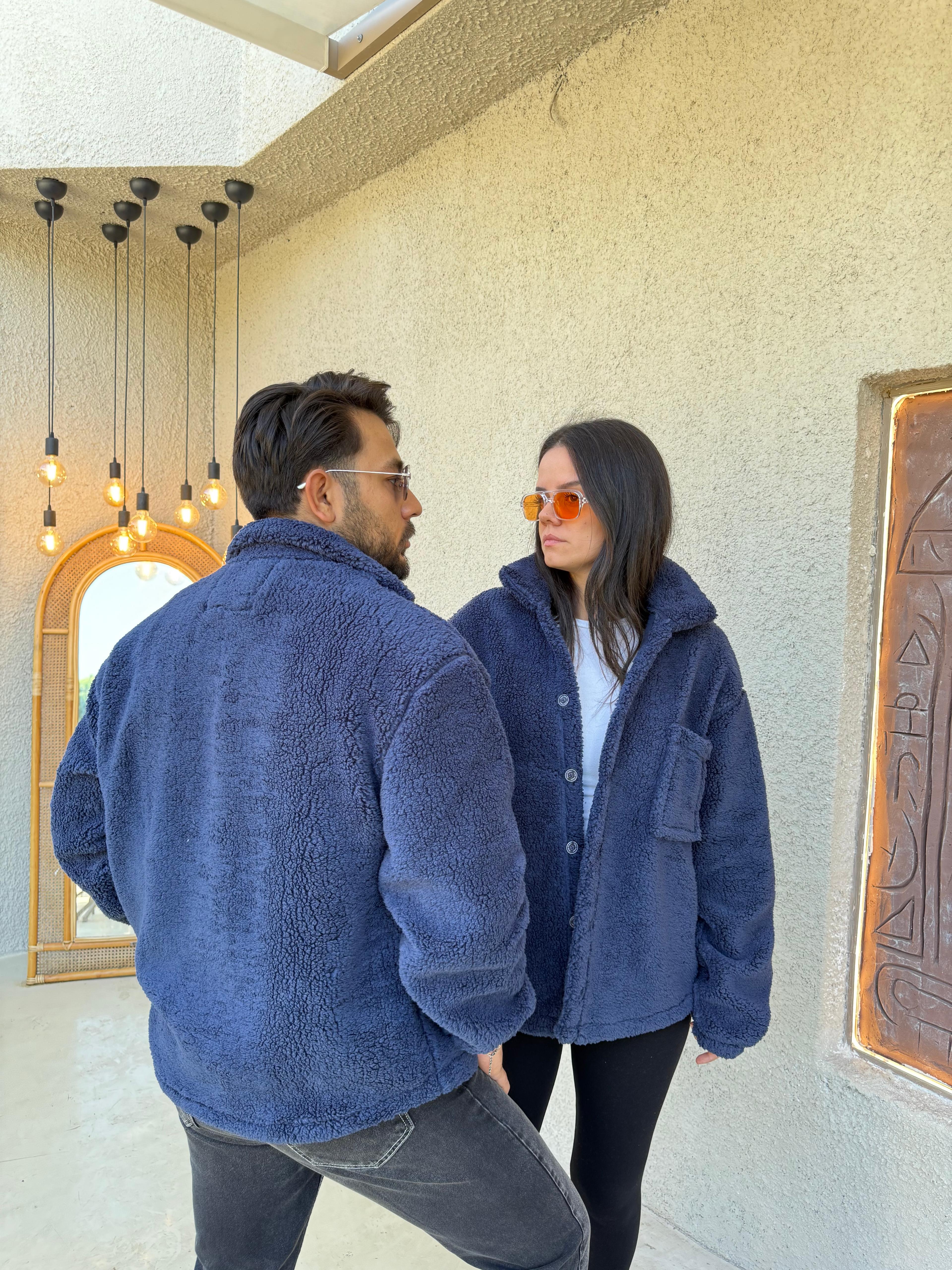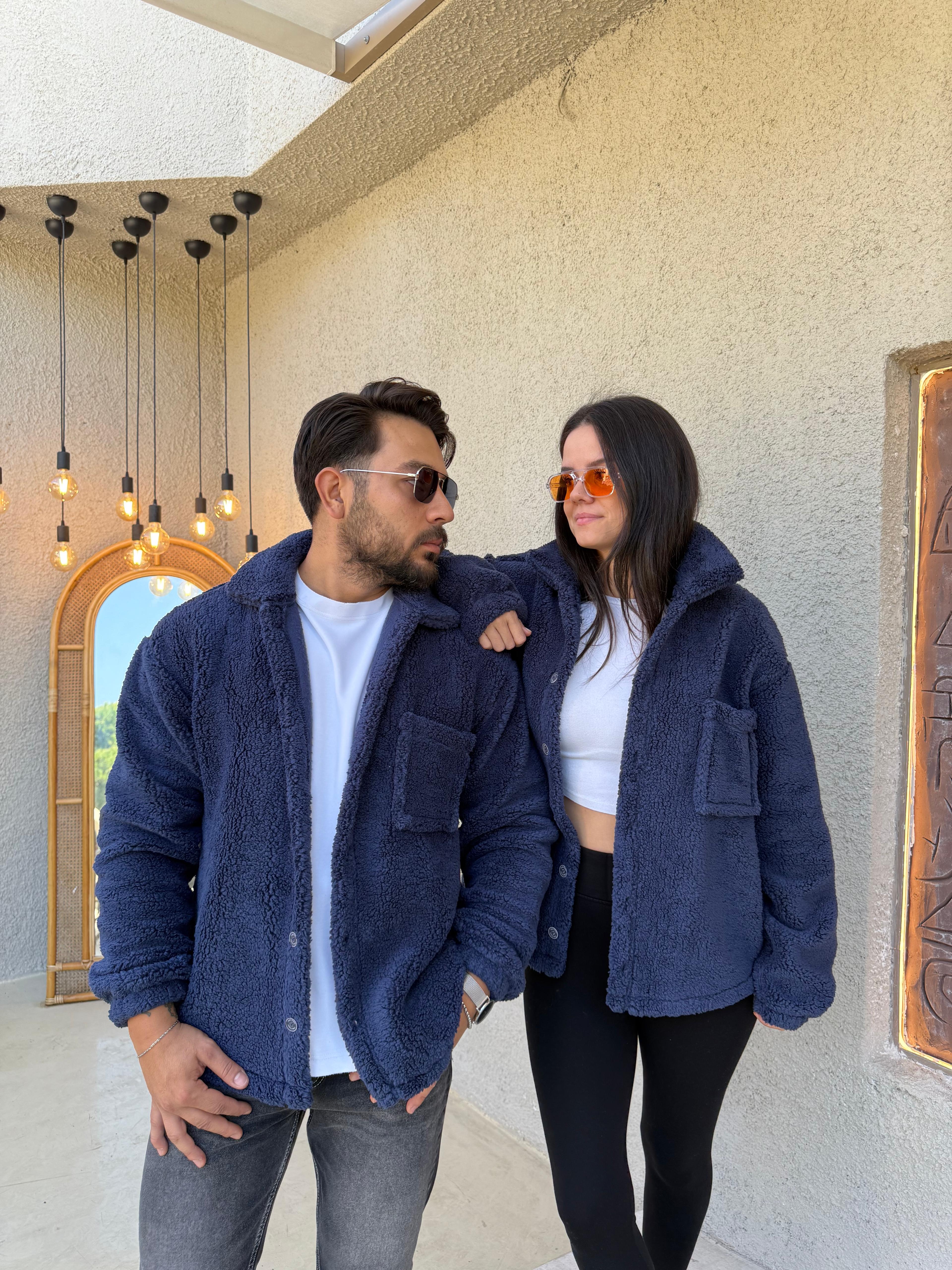 Çift Kombini 2 Adet Düğmeli Kuzu Kumaş Lacivert Ceket