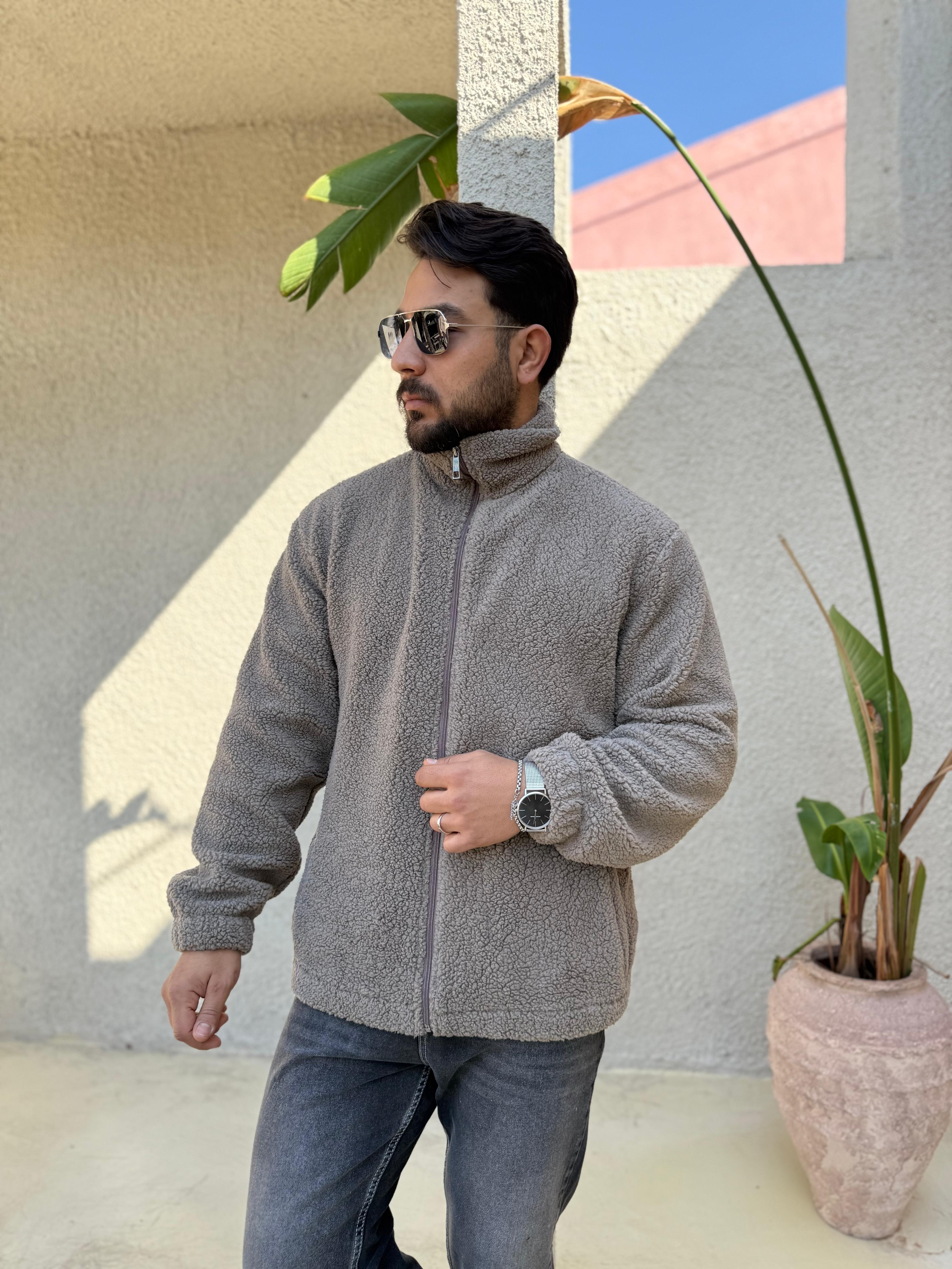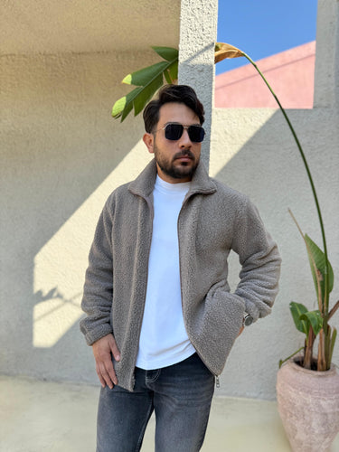 Kuzu Kumaş Fermuarlı Kahverengi Erkek Ceket
