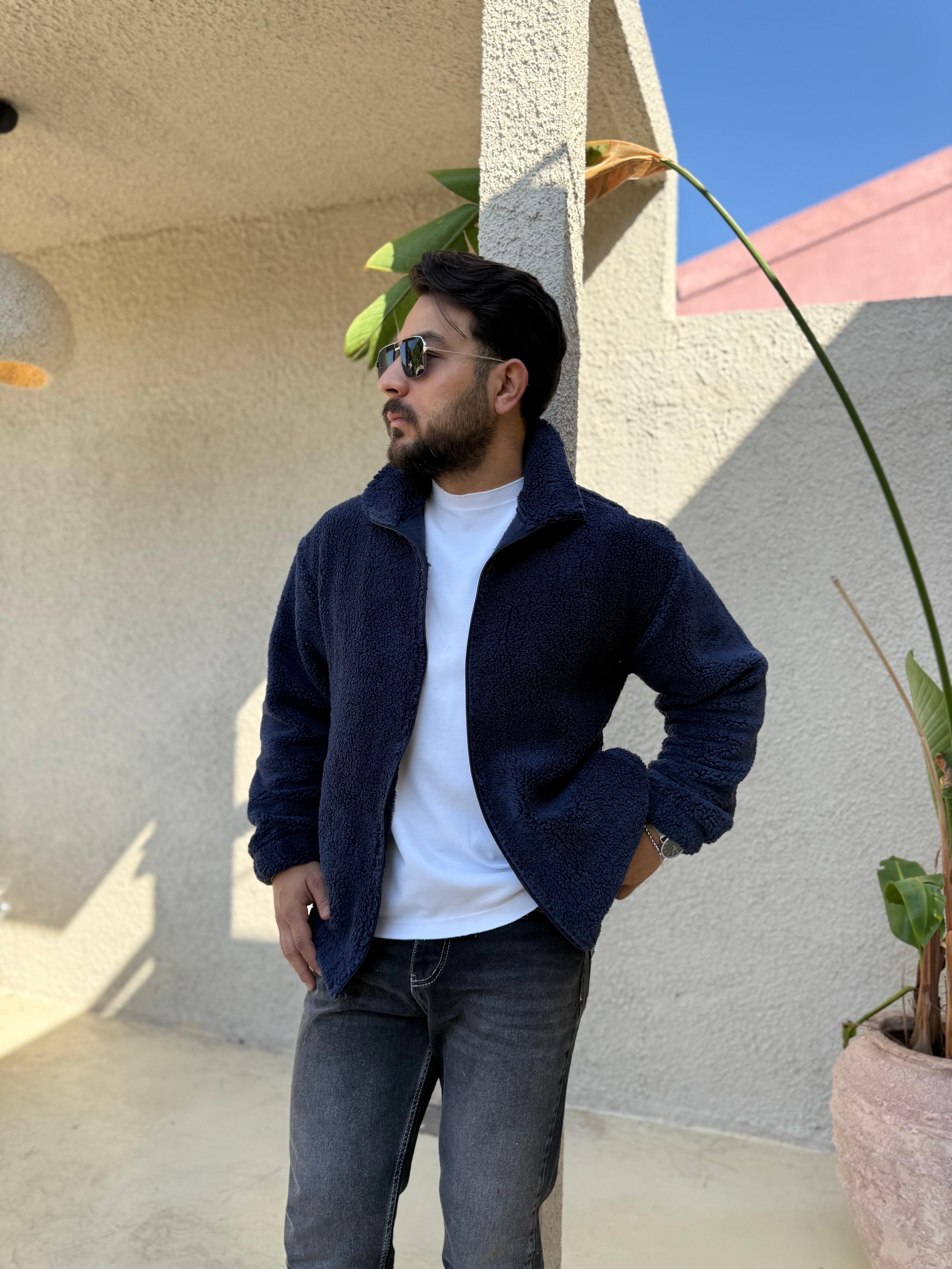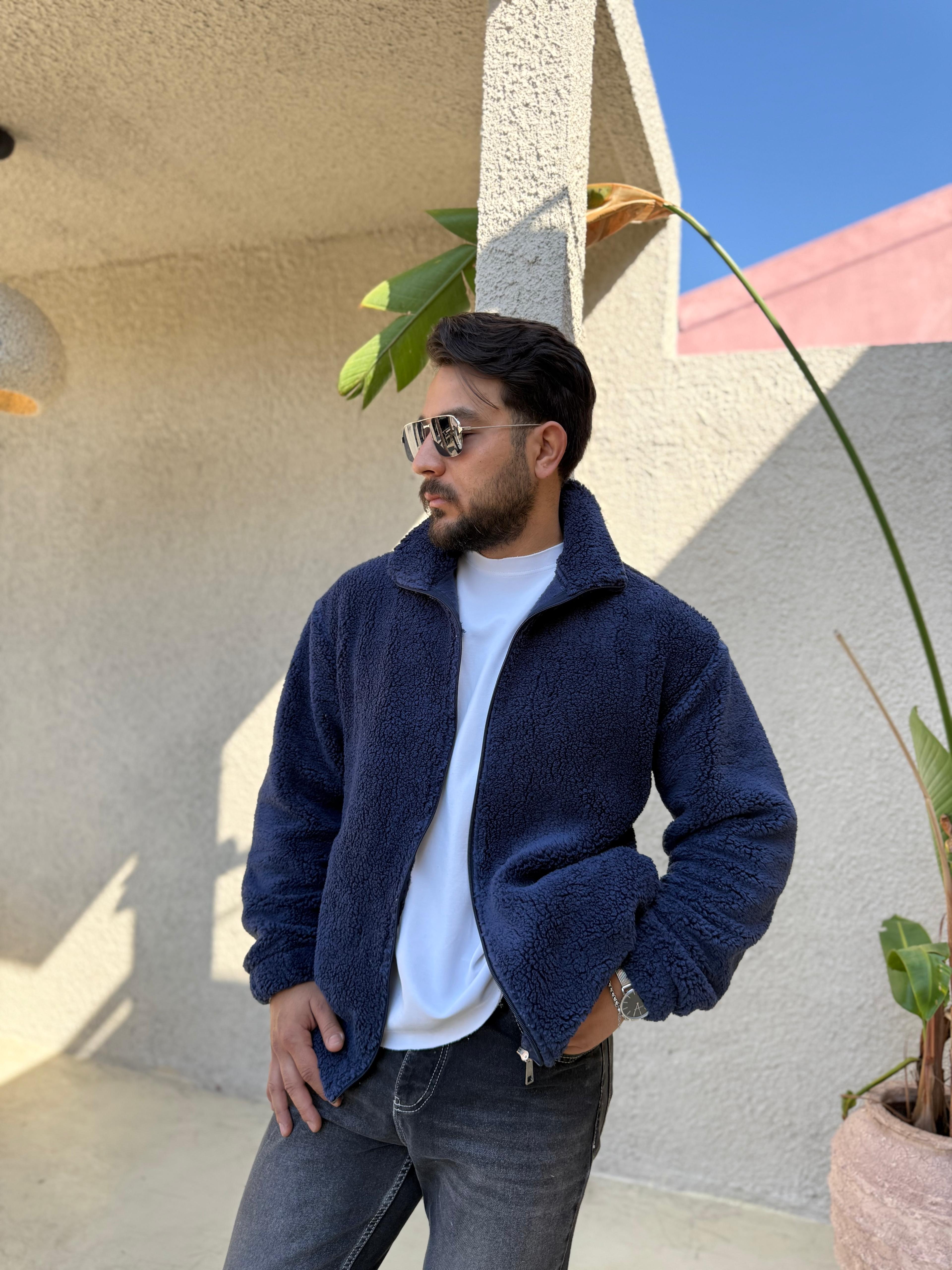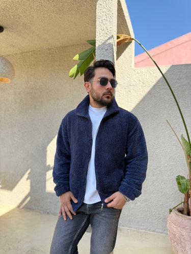 Kuzu Kumaş Fermuarlı Lacivert Erkek Ceket