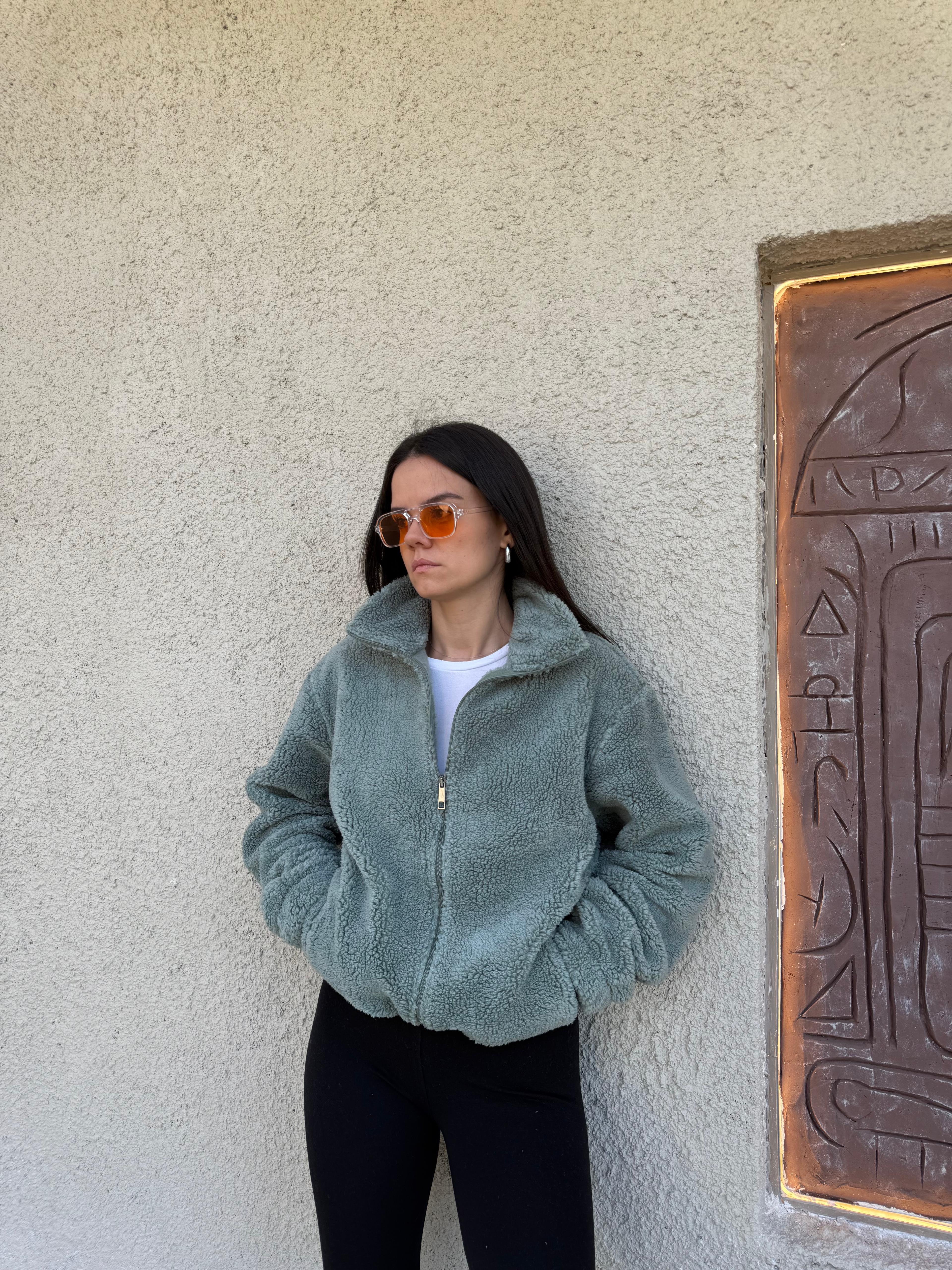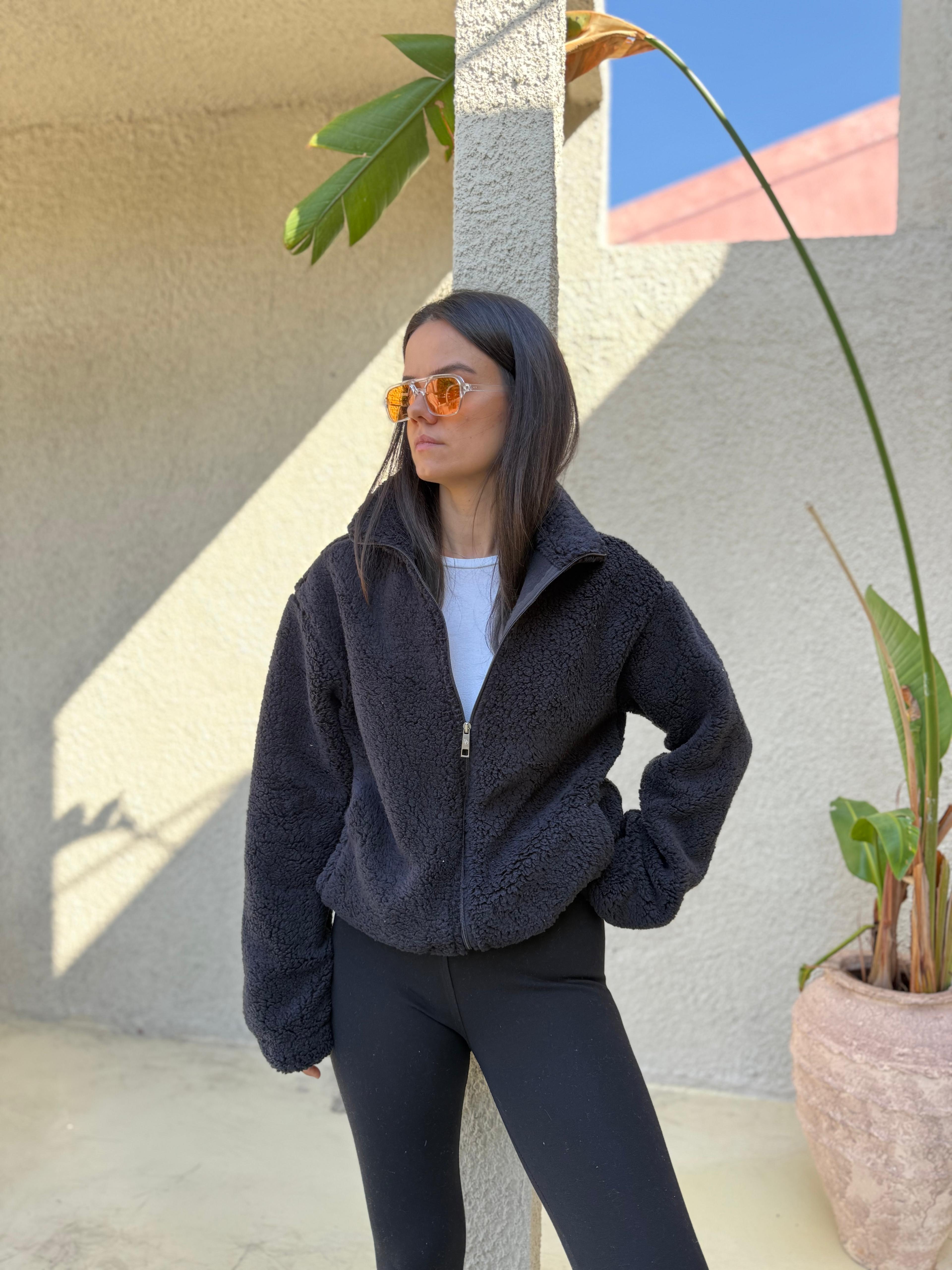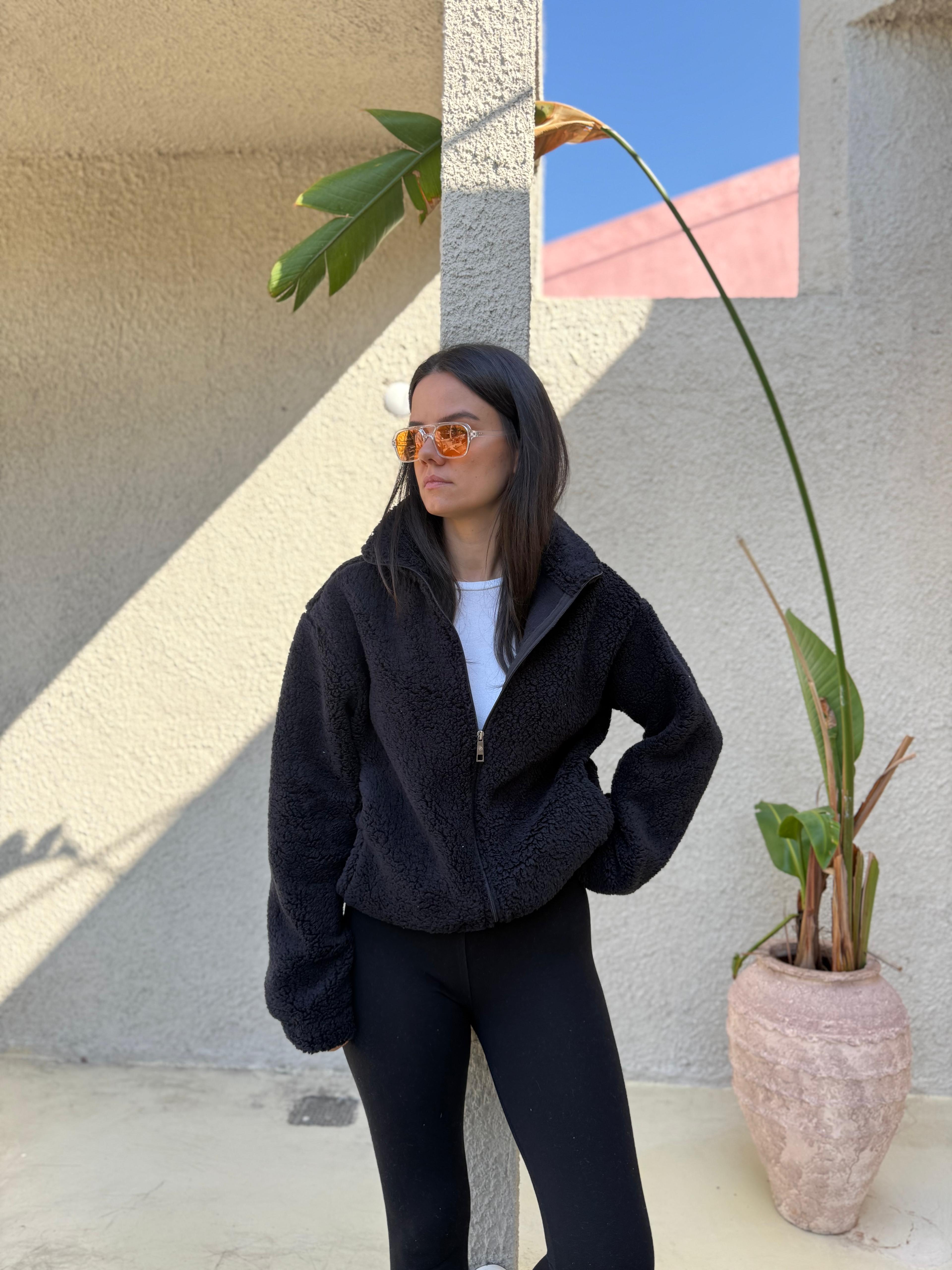 Kuzu Kumaş Fermuarlı Siyah Kadın Ceket