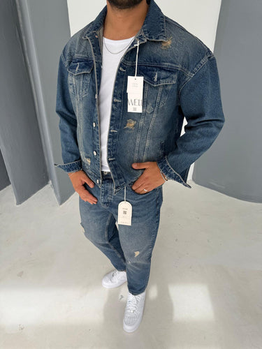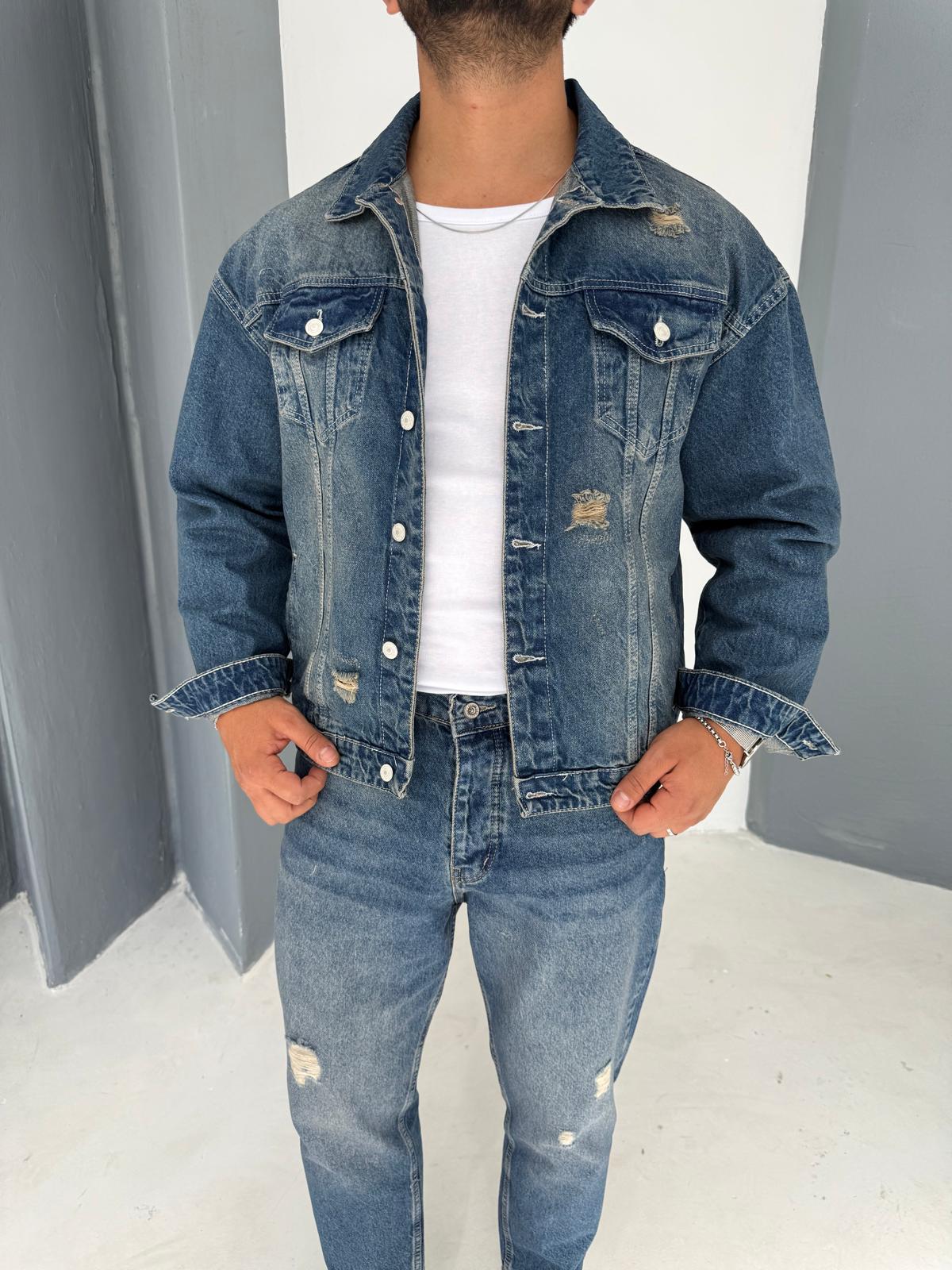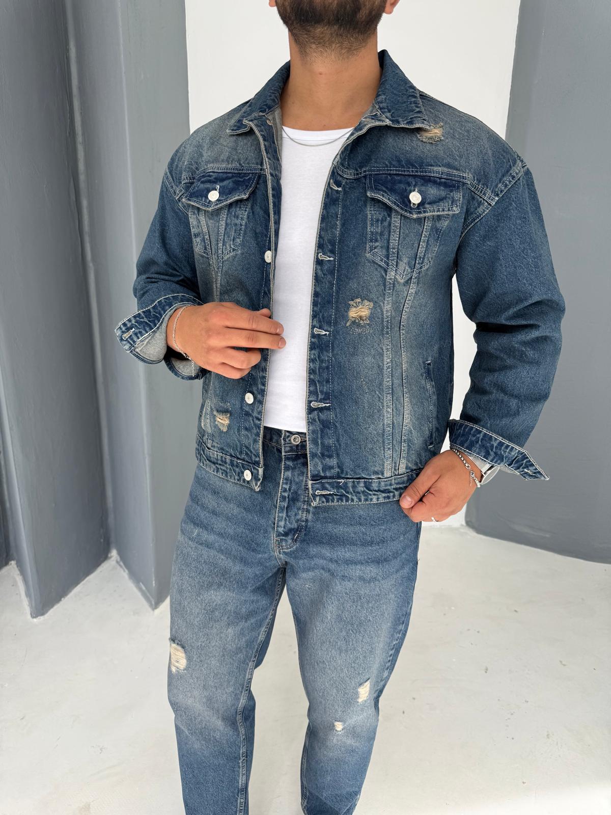 Yırtık Detay Kot Ceket