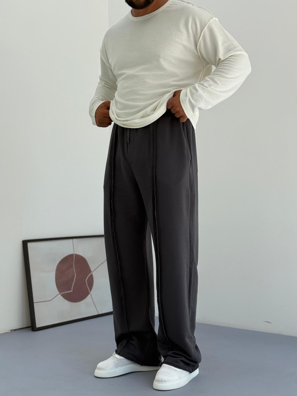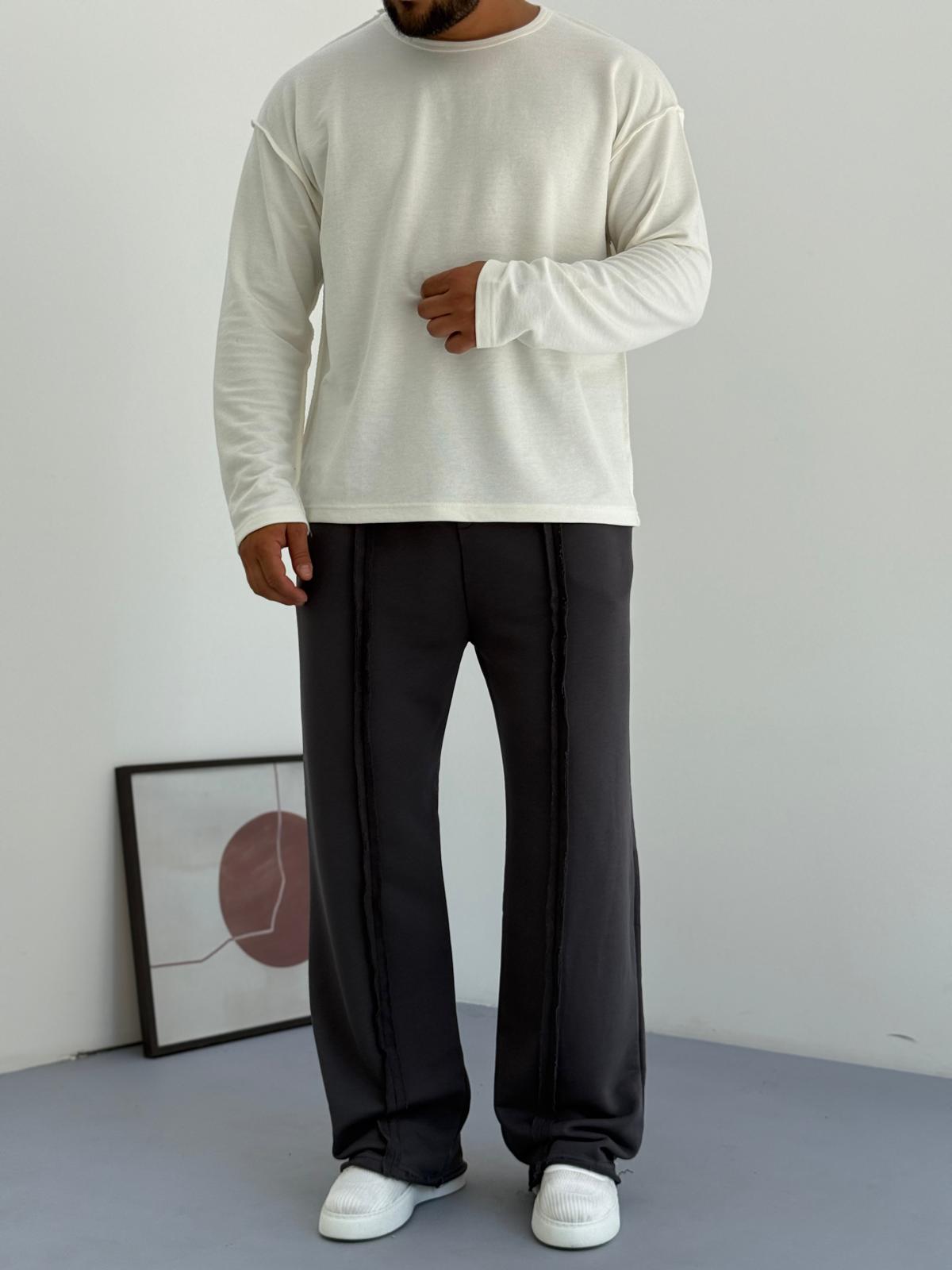 Dikiş Detaylı %100 Pamuk Füme Eşofman Altı
