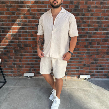 Pano Baskılı Natural Keten Gömlek-Şort Takım