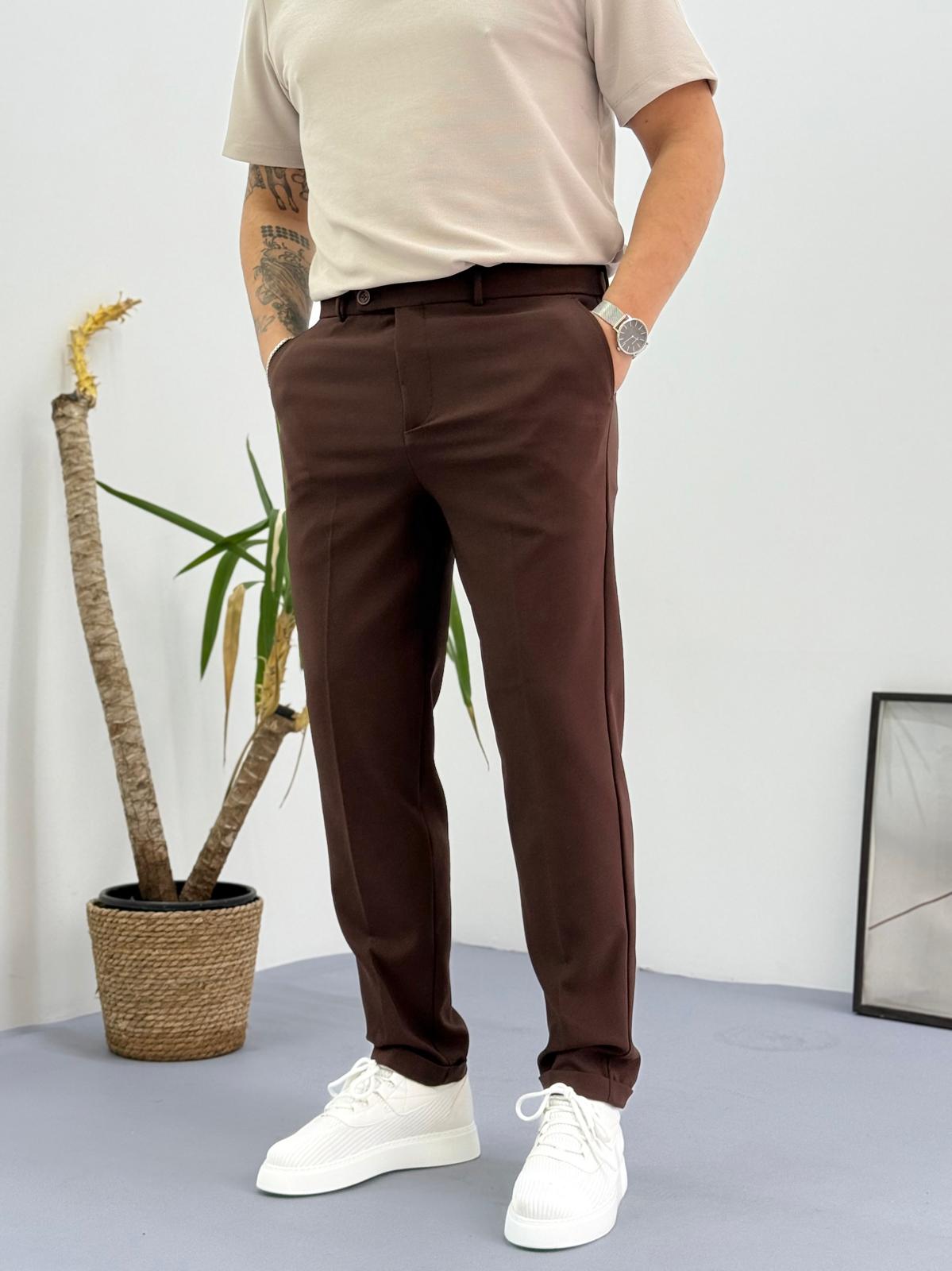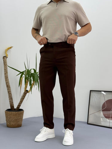 Kahverengi Duble Paça Klasik Kesim Pantolon