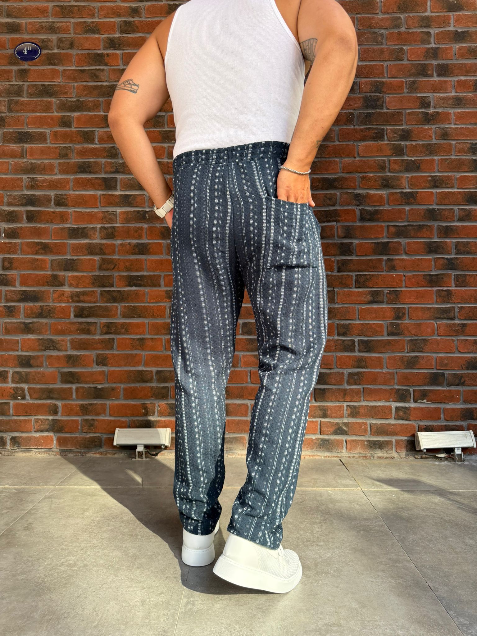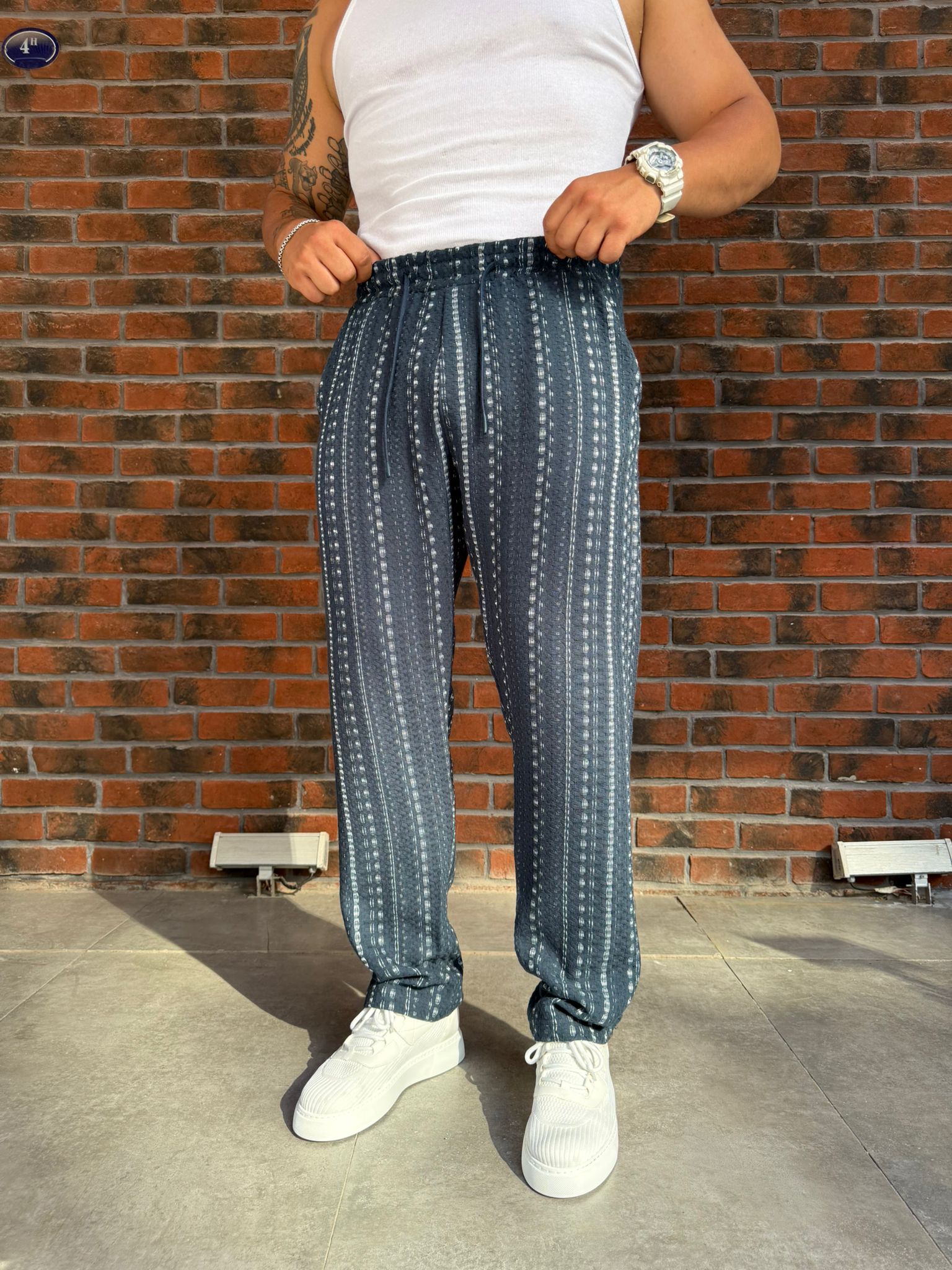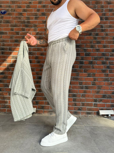Petrol Mavi Kendinden Desenli Örme Pantolon