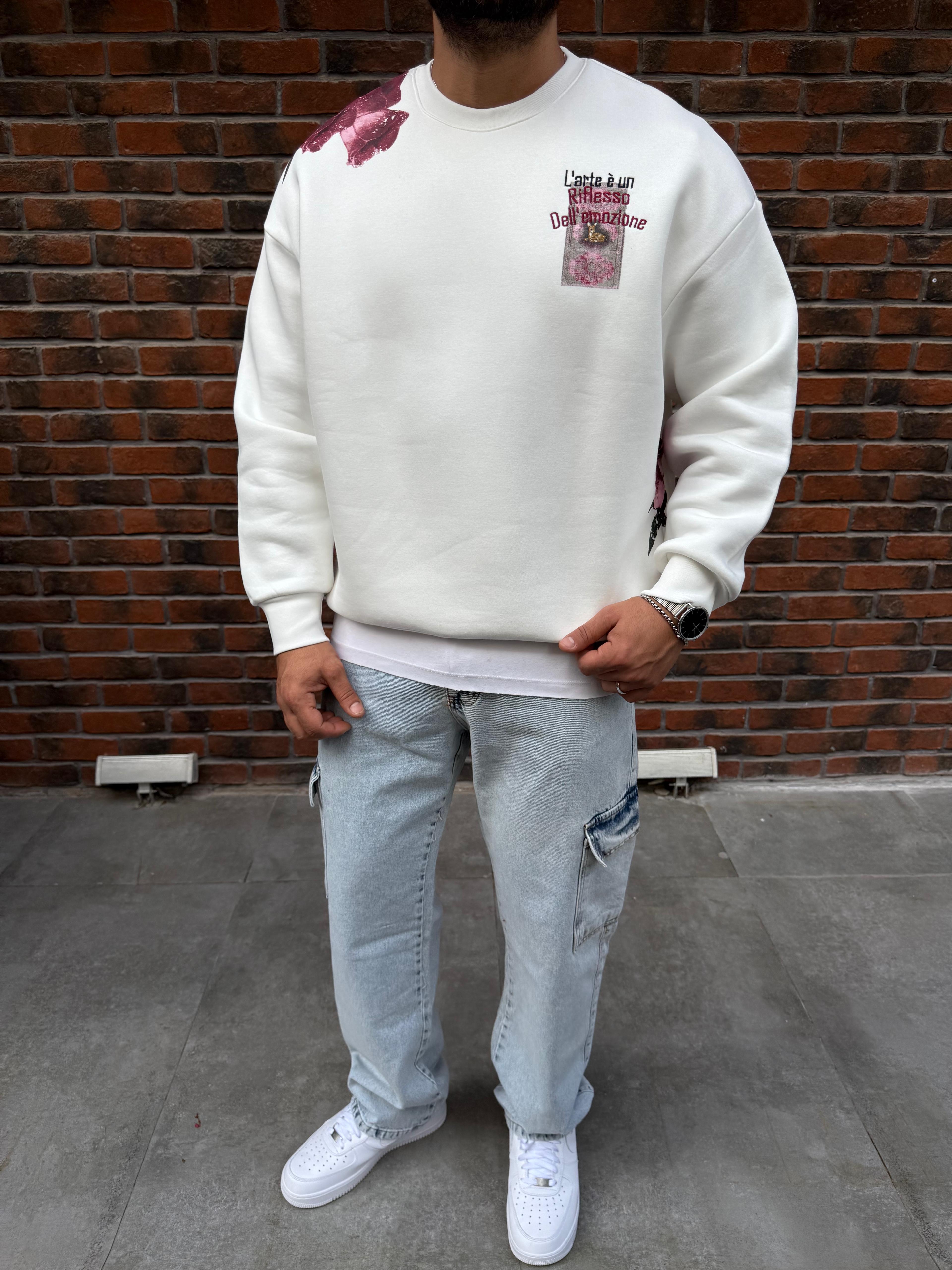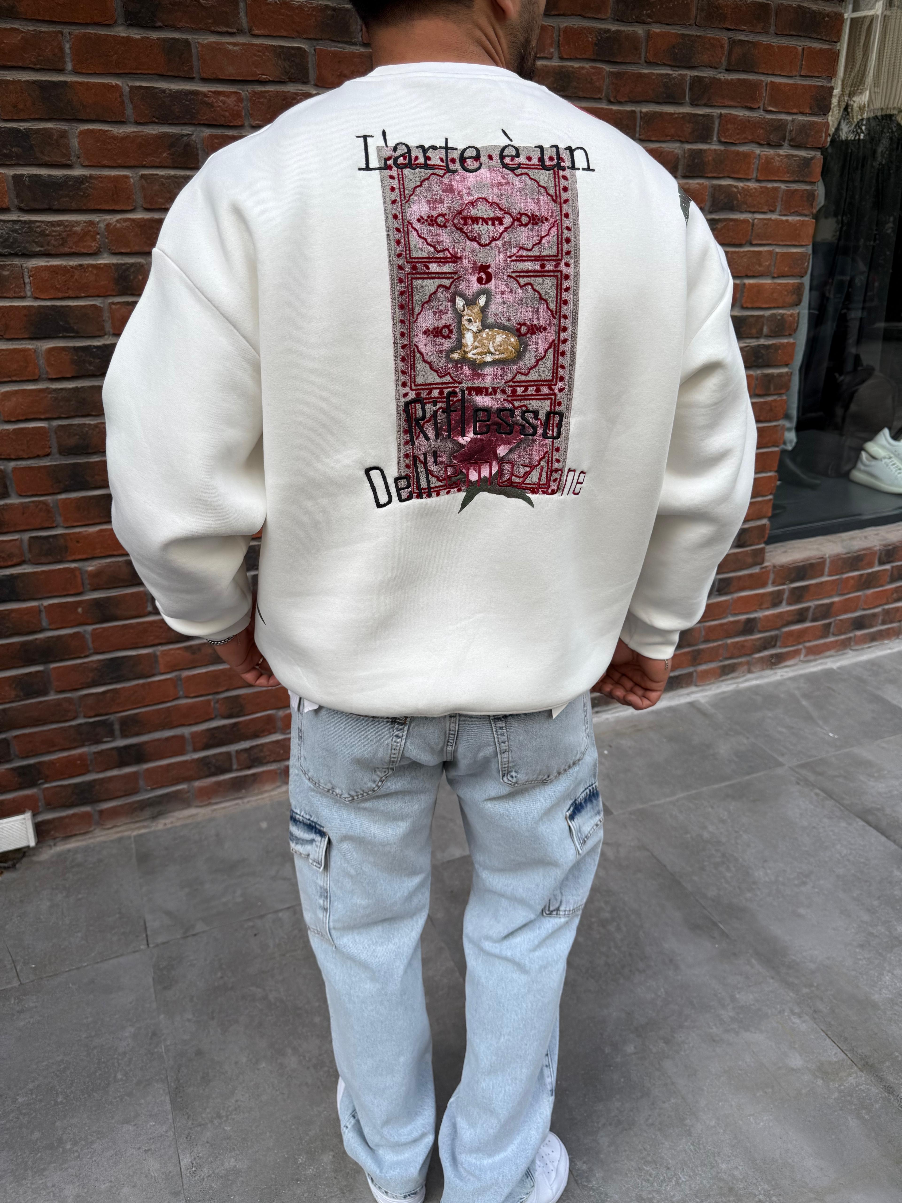 Premium Nakış Detaylı Beyaz Sweatshirt
