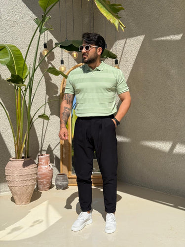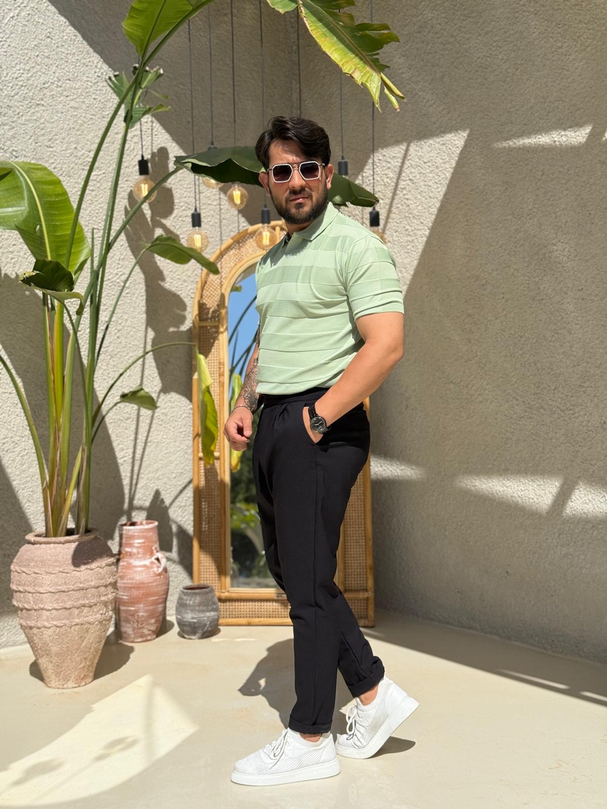 YEŞİL KENDİNDEN ÇİZGİLİ TRİKO TİŞÖRT
