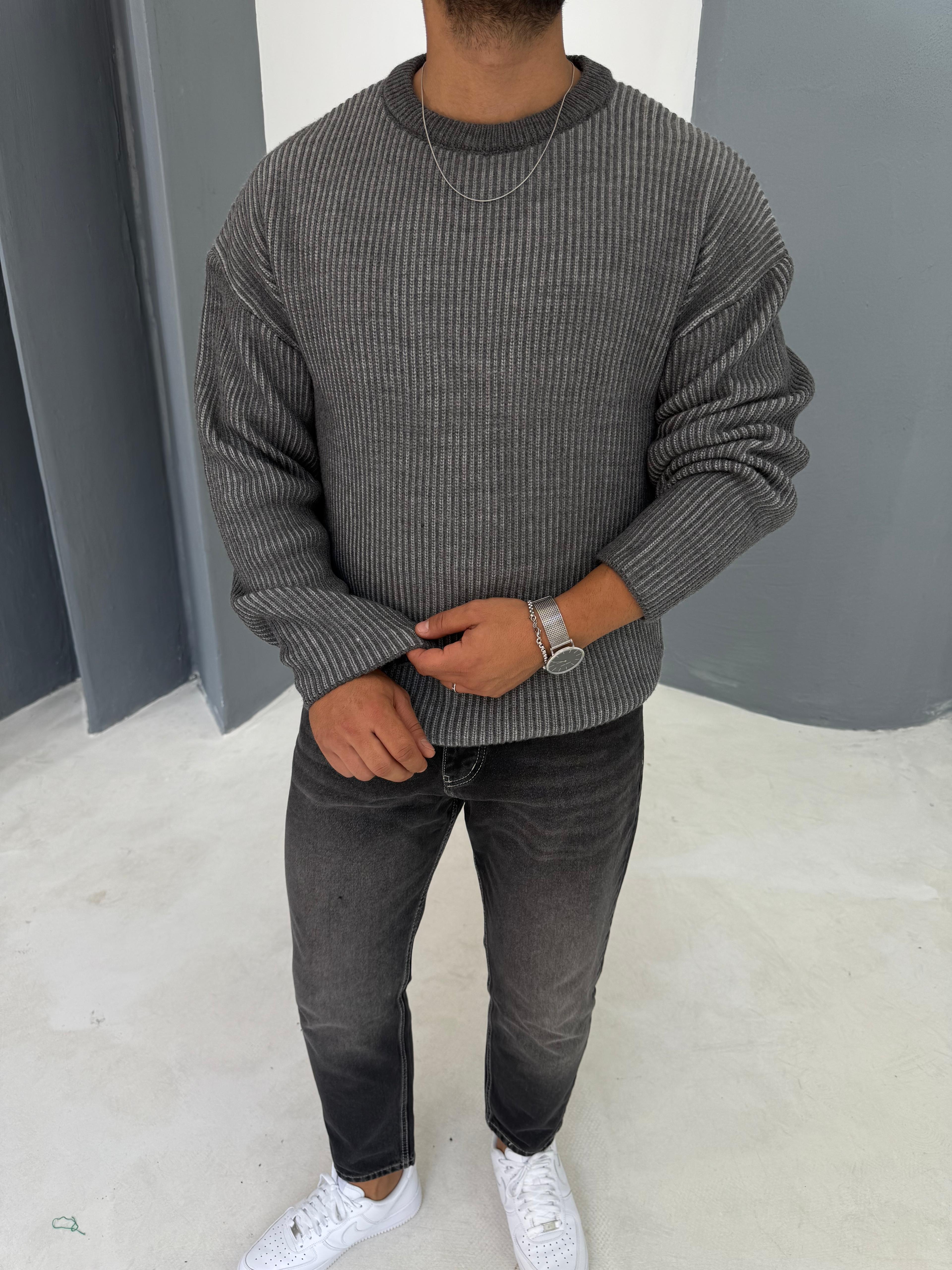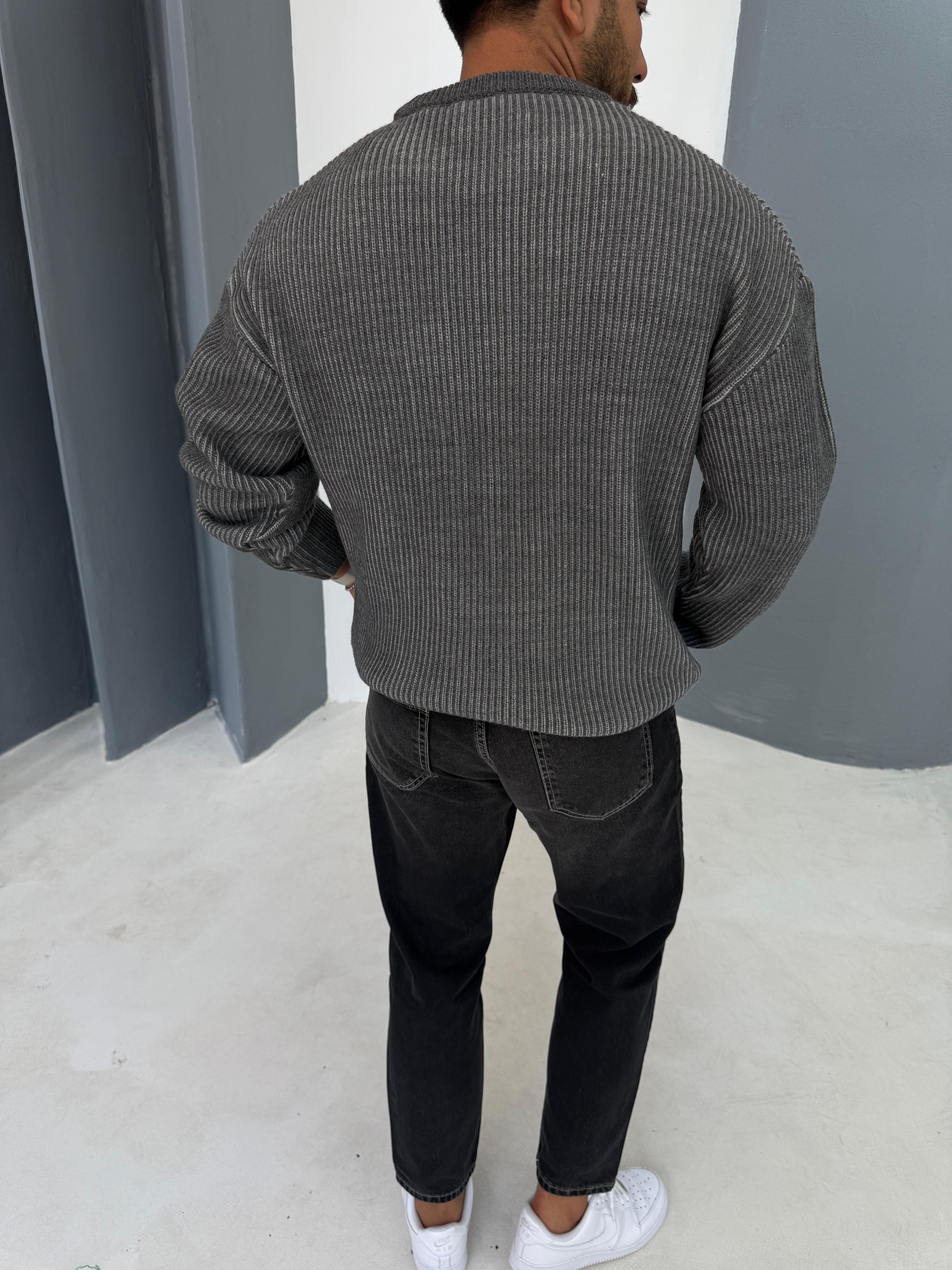 Bisiklet Yaka Füme-Taş Triko Kazak