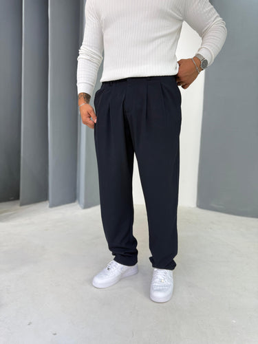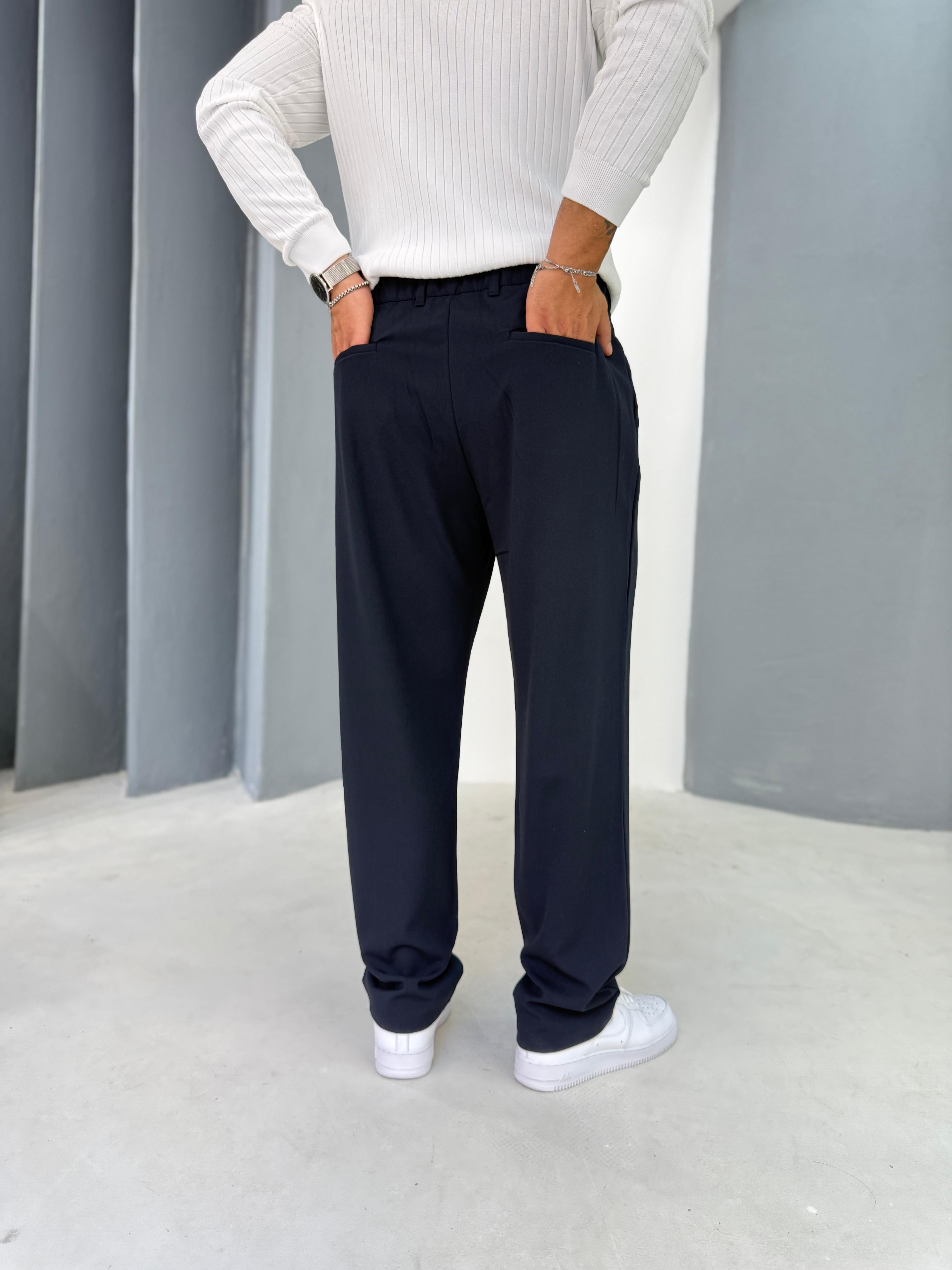 Pile Detaylı Baggy Lacivert Kumaş Pantolon