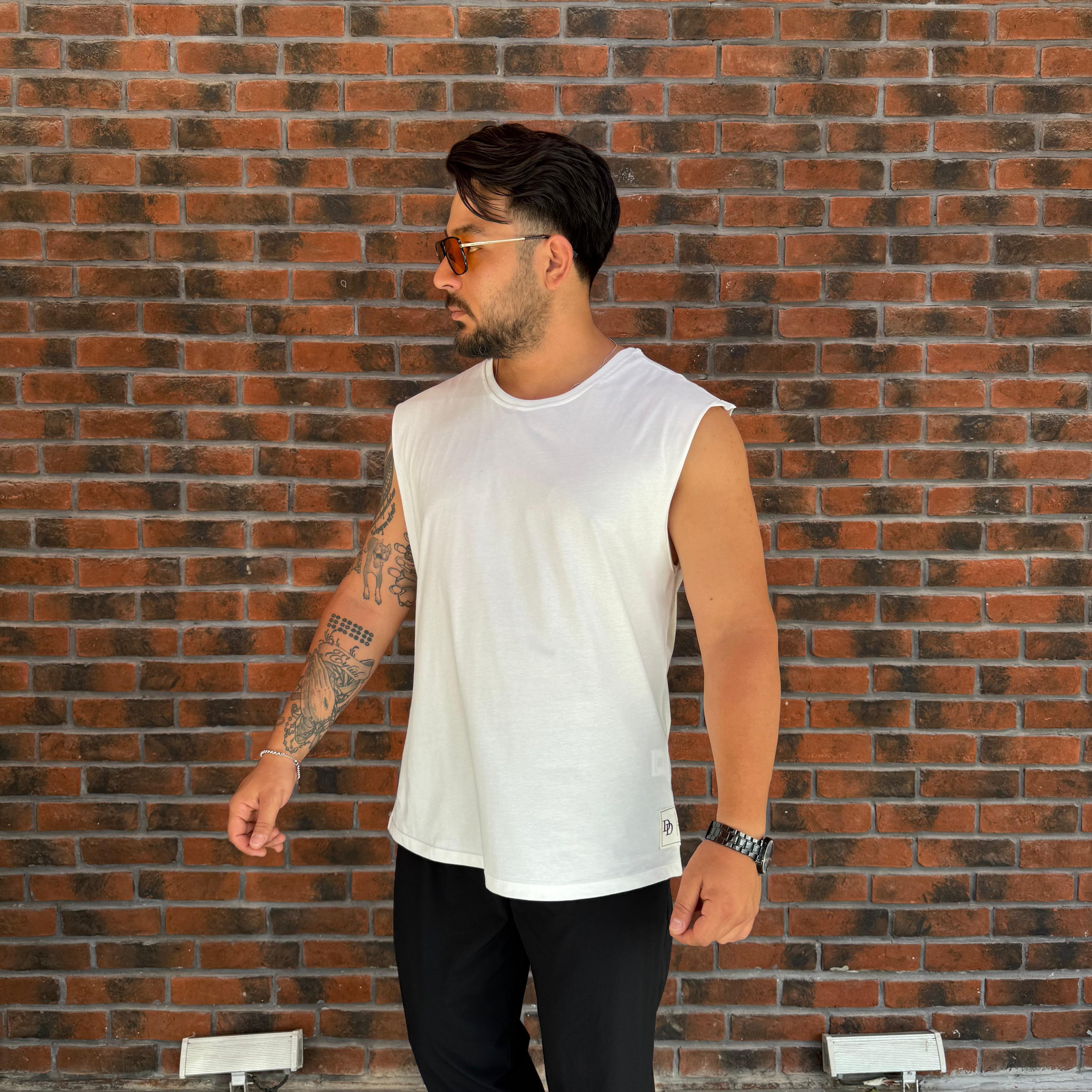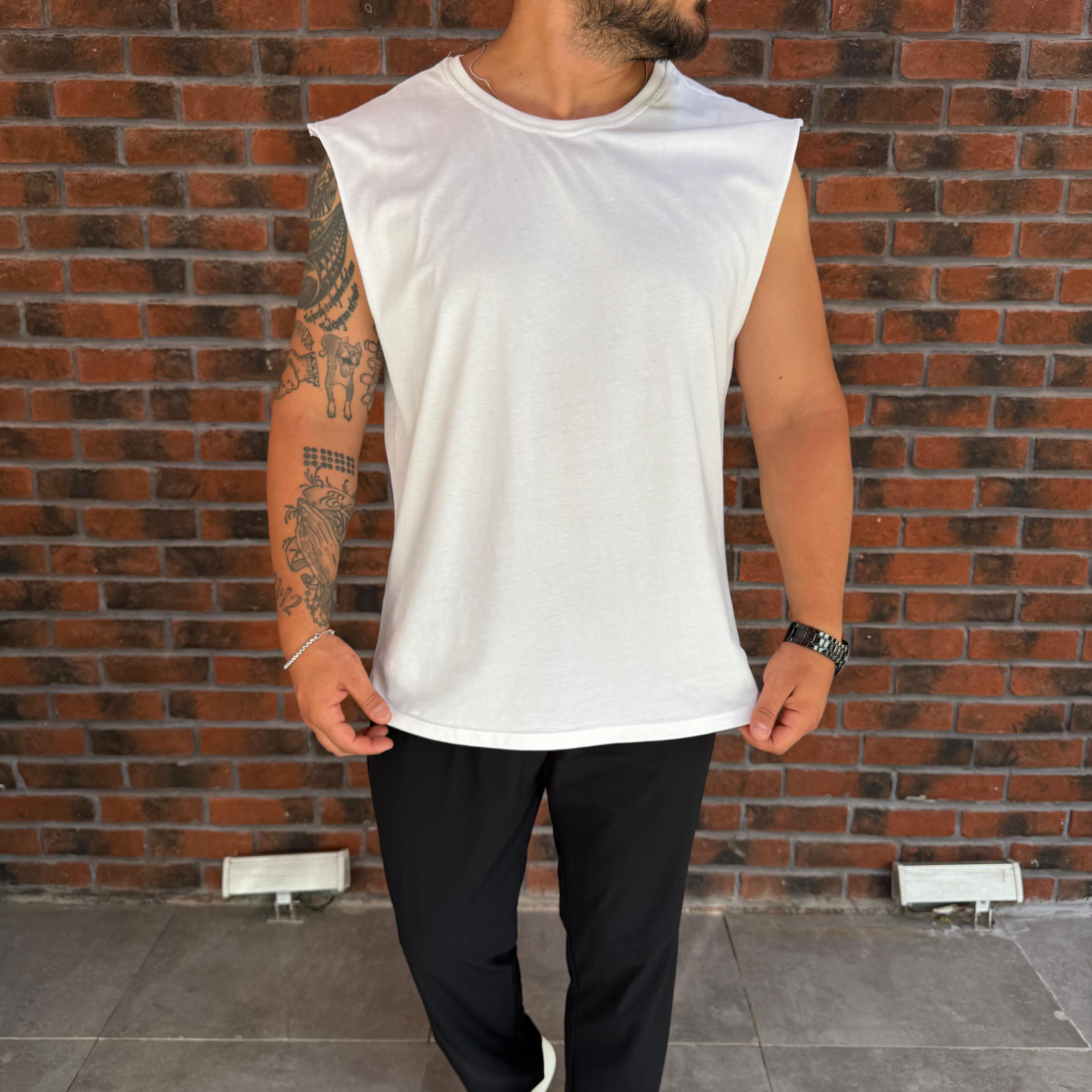 %100 Pamuk İşlemeli Kolsuz Tshirt