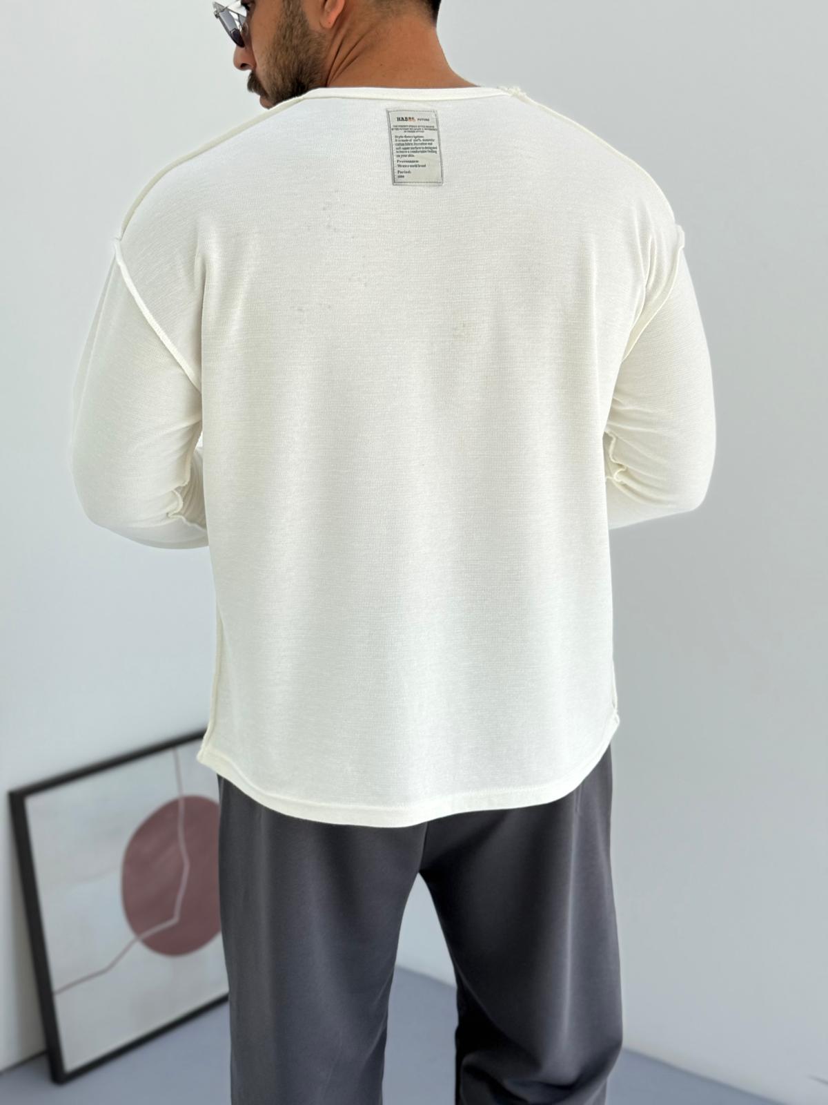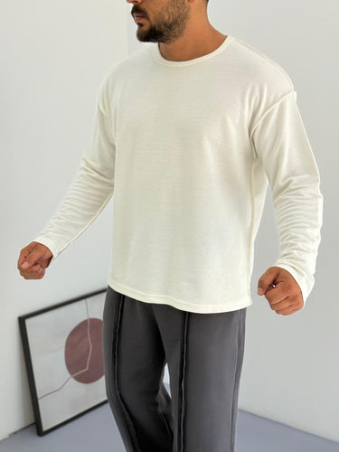 Dikiş Detaylı %100 Pamuk Beyaz Sweat