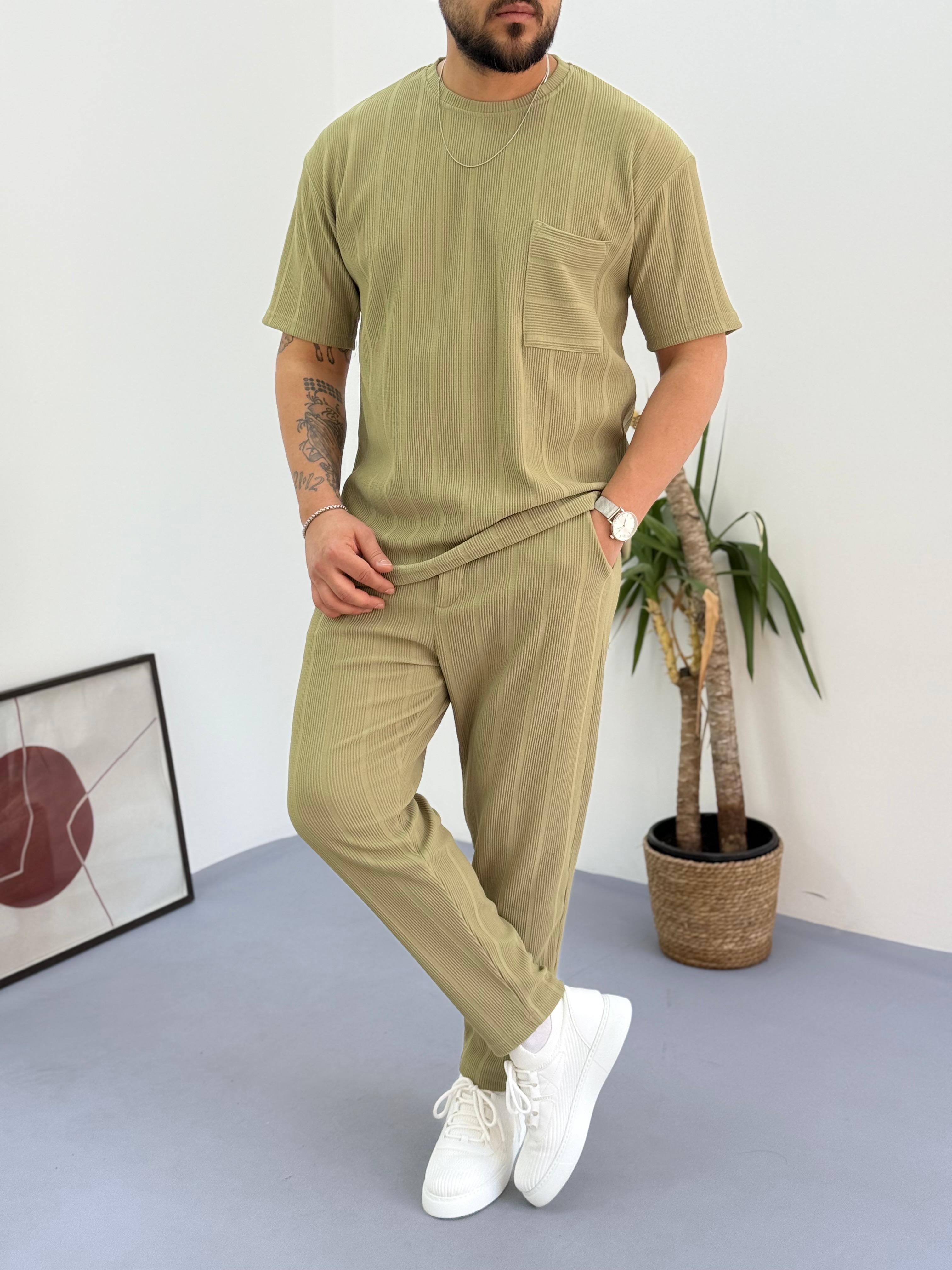 YEŞİL-BEYAZ RAPORLU OTTOMAN KUMAŞ TAKIM